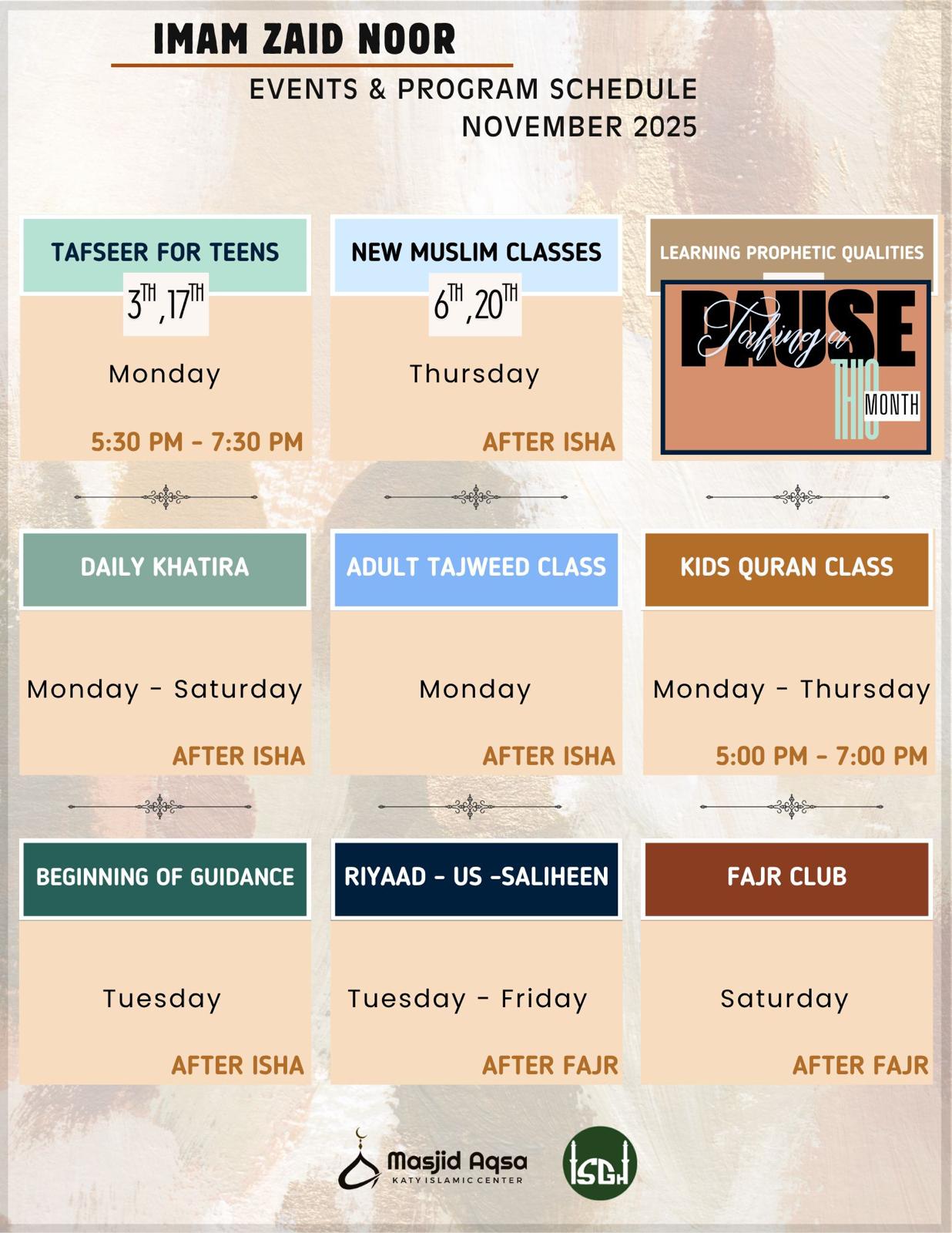 Upcoming Events and Weekly Programs at our Masjid